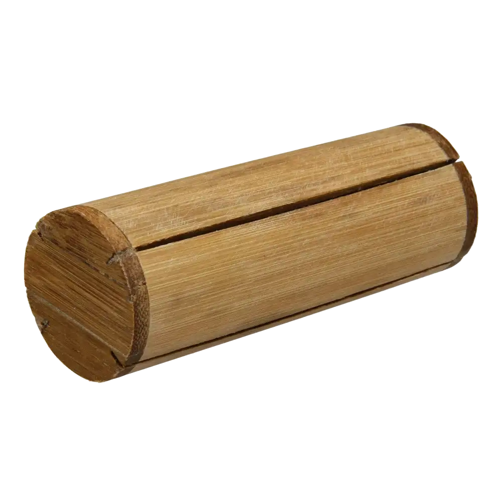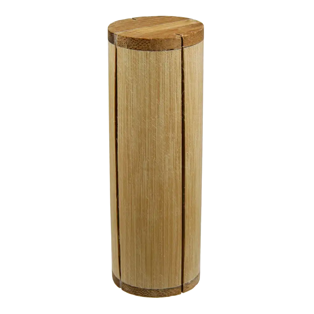 The bamboo is hand-finished, and because each piece of natural material carries its own grain and density variation, size and color differ slightly from shaker to shaker. This is not inconsistency; it is the signature of handmade work. The slitted design is what distinguishes this shaker from solid alternatives—the gaps permit the internal contents to move with less resistance on the open stroke, and to be dampened more effectively on the closed stroke.