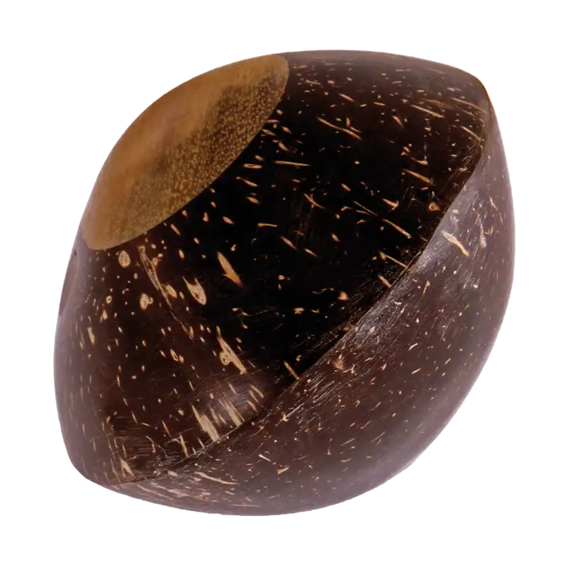 A light, controlled shake generates a gentle, whispering texture. Faster or more vigorous movement produces brighter, more defined rhythmic articulation. The natural resonance of the coconut shell itself contributes to the organic quality of the sound — a characteristic that distinguishes it from synthetic shakers filled with plastic pellets or beads.