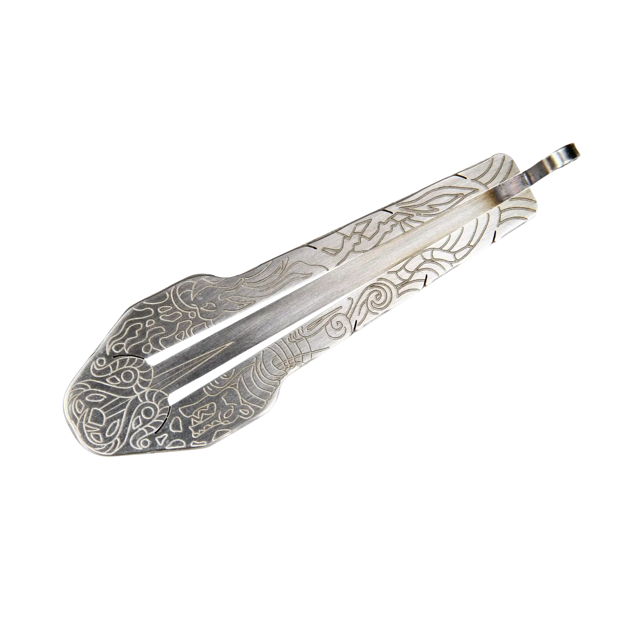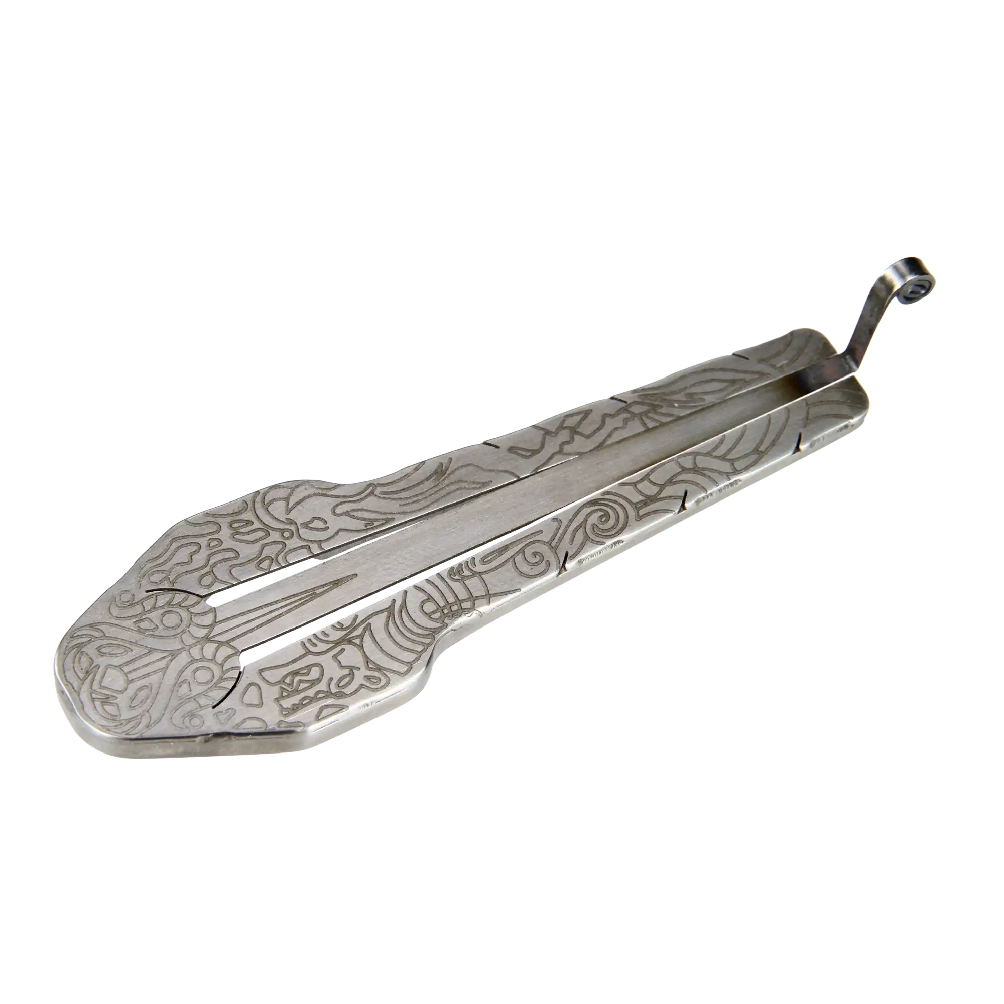 Aesthetic detail complements function: mythological animals and plants are laser-engraved onto one face of the reed plate, while the reverse features a hummingbird motif. These decorations are applied to the working surface without compromising acoustic integrity.