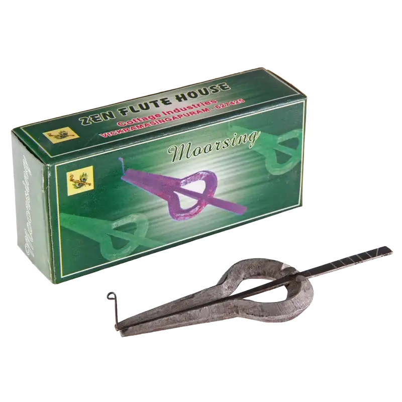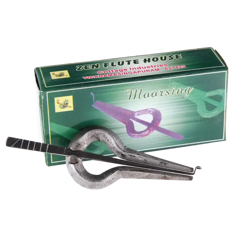 Guimbarde Morsing classique1 — A jaw harp rooted in South Indian Carnatic tradition, this metal instrument produces the clear, resonant tones that have accompanied classical performances for centuries. Held against the teeth with the metal tongue plucked by finger, it creates rhythmic and melodic patterns through breath control and mouth-cavity shaping. Essential in Carnatic ensembles for transcribing drum patterns and complementing vocal soloists. Available in multiple pitches from C?3 to G?3 — choose the tuning that fits your ensemble or practice.