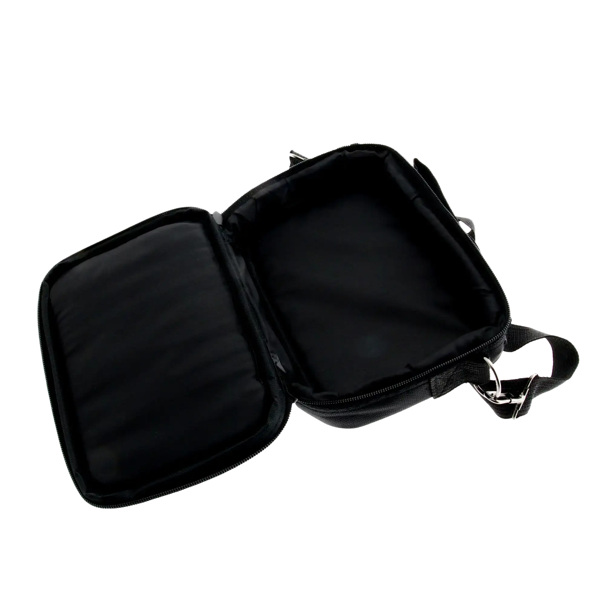 Case for 18-Tone Duo Kalimba — Specialised transport case designed to protect your Duo kalimba against impacts, scratches and climatic variations. Black nylon padding with custom interior that keeps the instrument stable during transport, adjustable shoulder strap for cross-body carrying, and dual-zip closure for quick access. Dimensions: 23 × 19 × 8 cm. Ideal for touring musicians, workshops and secure home storage — preserves the tuning stability and sound quality of your calibrated tines.